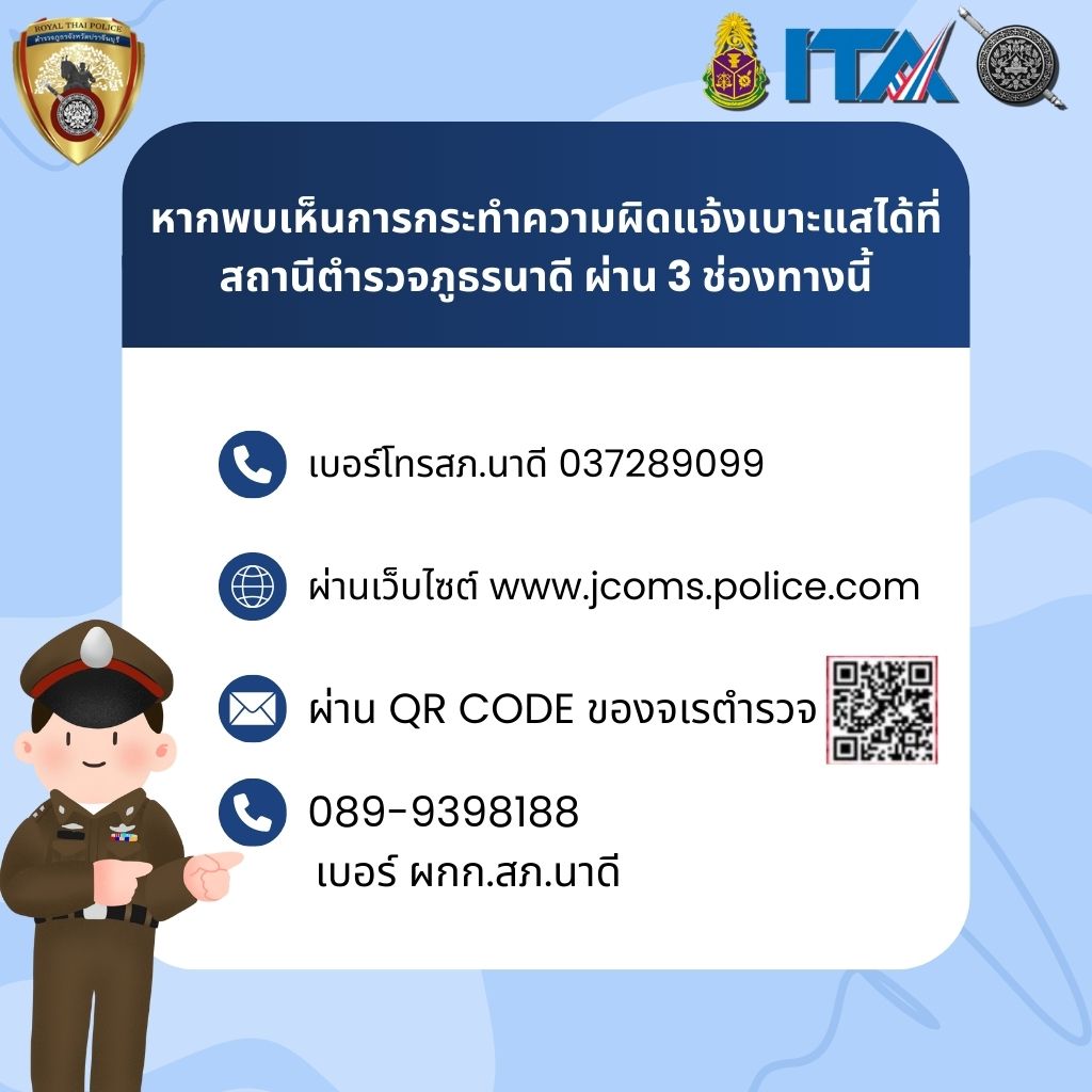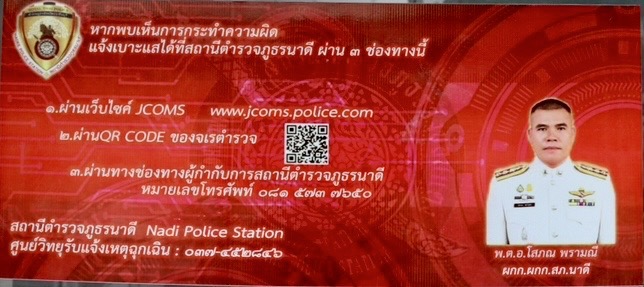 3.ทางโทรศัพท์ สถานีตำรวจภูธรนาดีหมายเลข 037289099